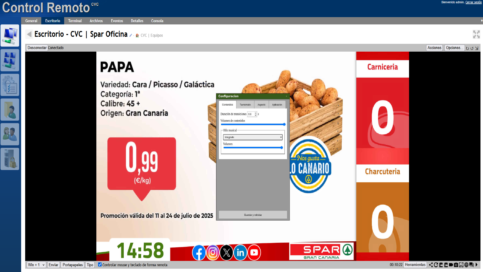 Volumen de contenidos: Esta barra solo afecta a los contenidos con volumen, como las cuñas o los spots publicitarios.