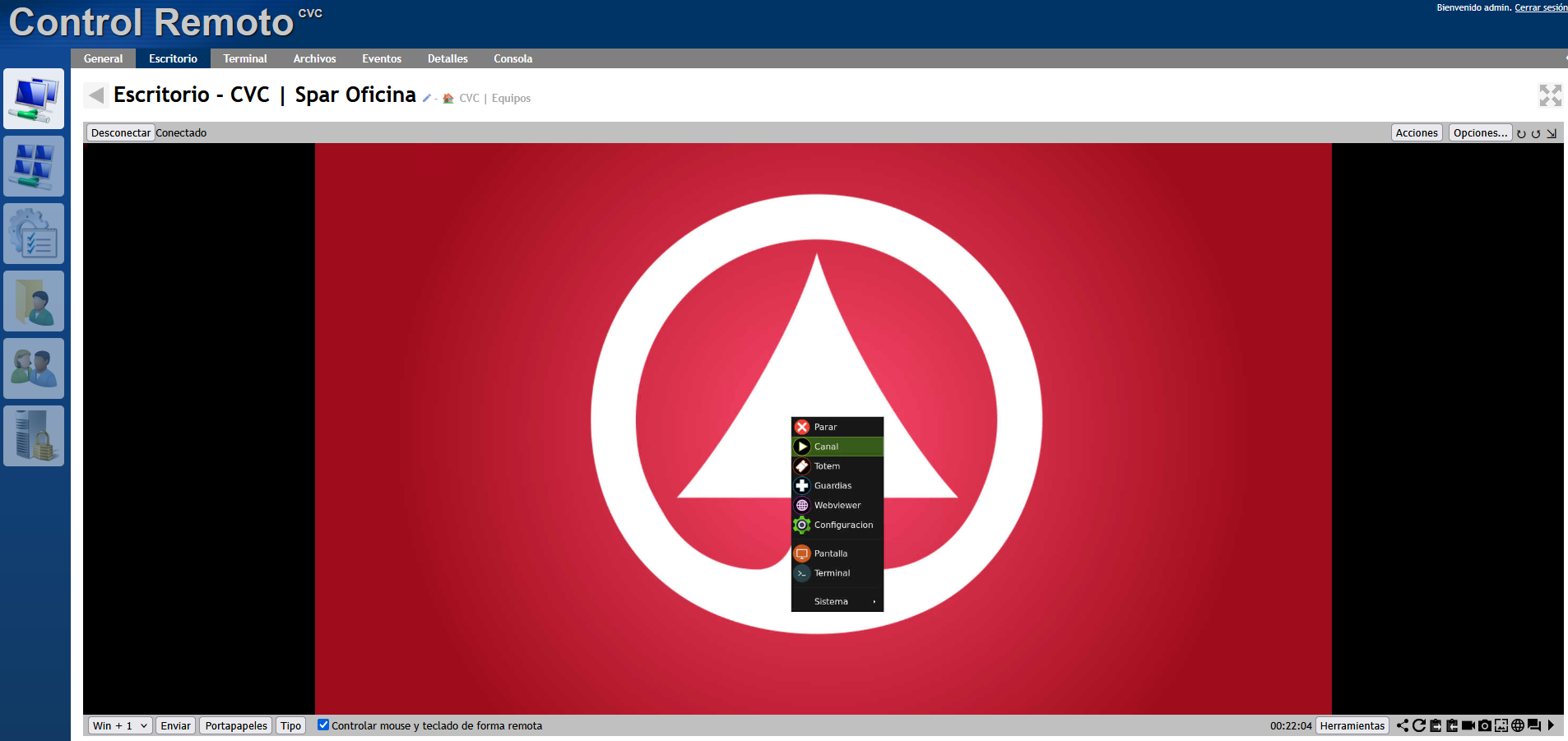 En el escritorio, hacemos clic en cualquier lugar y seleccionamos "Canal" para activar los contenidos y el hilo musical.